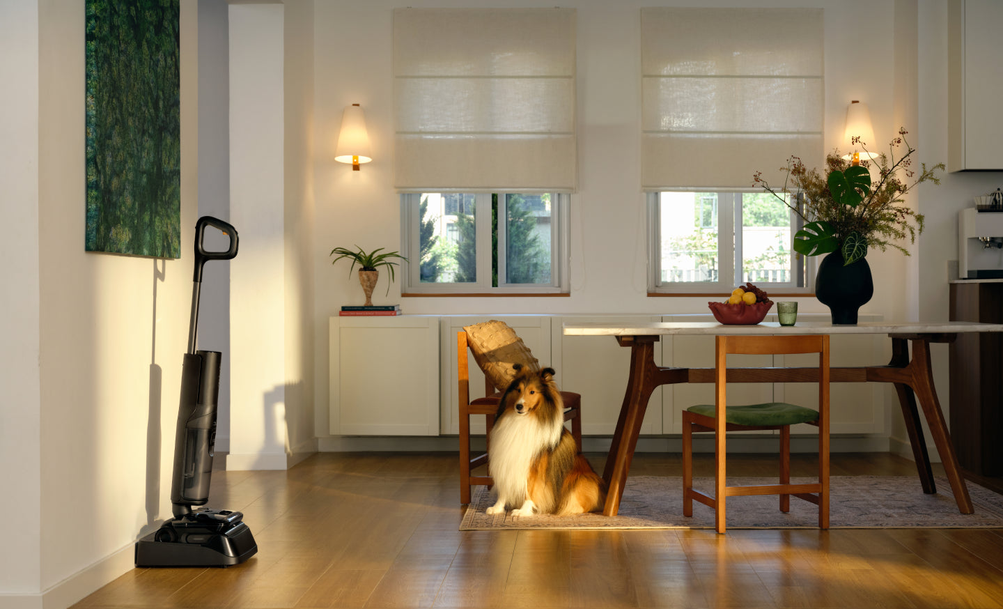 Das System bleibt einsatzbereit, selbst wenn es aufrechtstehend pausiert, um bei Möbeln oder in Schwellenbereichen zu navigieren. Kein Warten, kein Neustart, einfach immer weiter reinigen.*