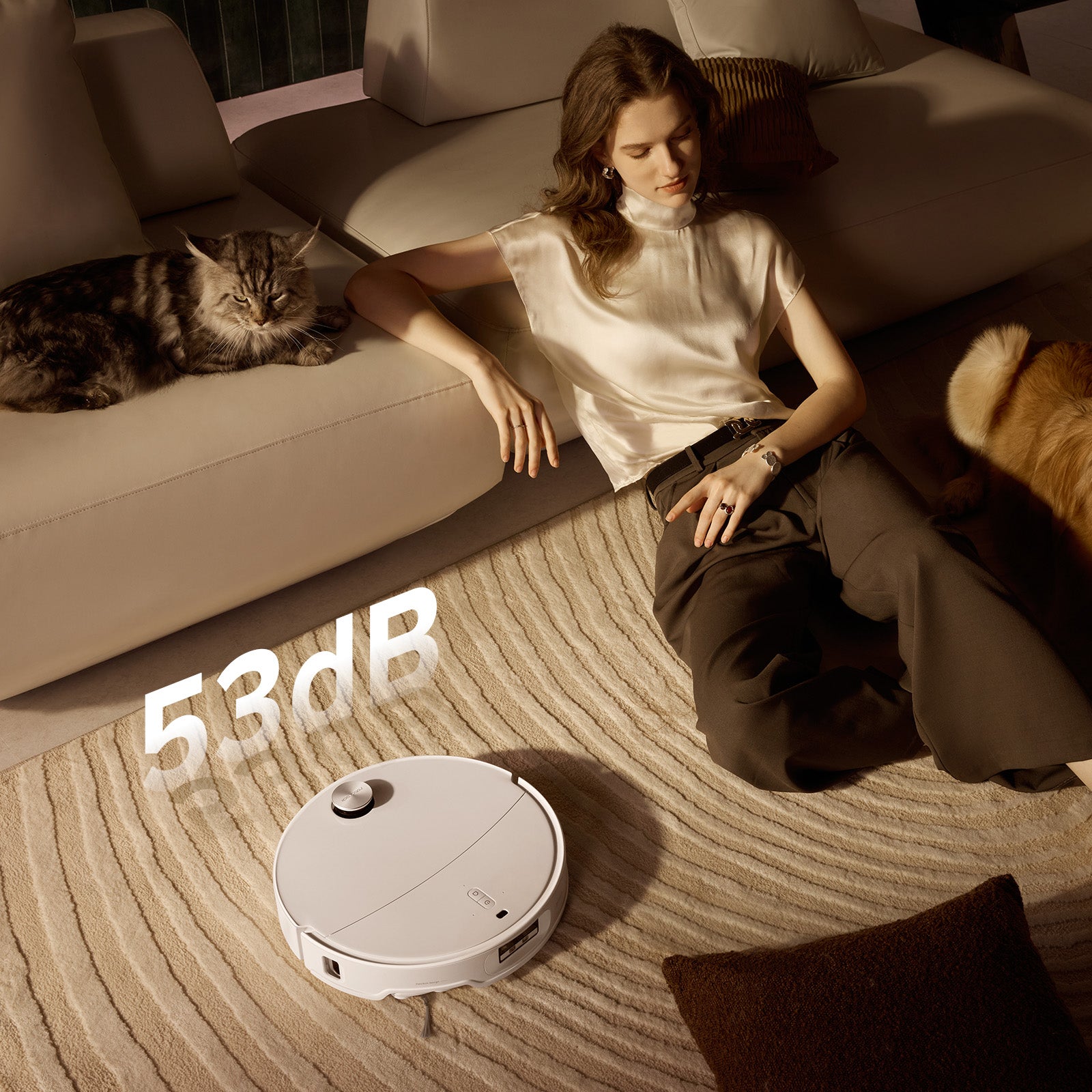 Mit bürstenlosen Motoren und einem optimierten Hardware-Design verringert der Roborock Qrevo CurvX während des Reinigens die Lärmentwicklung beträchtlich. Ein Geräuschniveau beim Wischen von nur 53 dB6 ist der Garant für eine bemerkenswert leise Reinigung, sodass deine Haustiere nicht gestört werden, sondern entspannt bleiben.