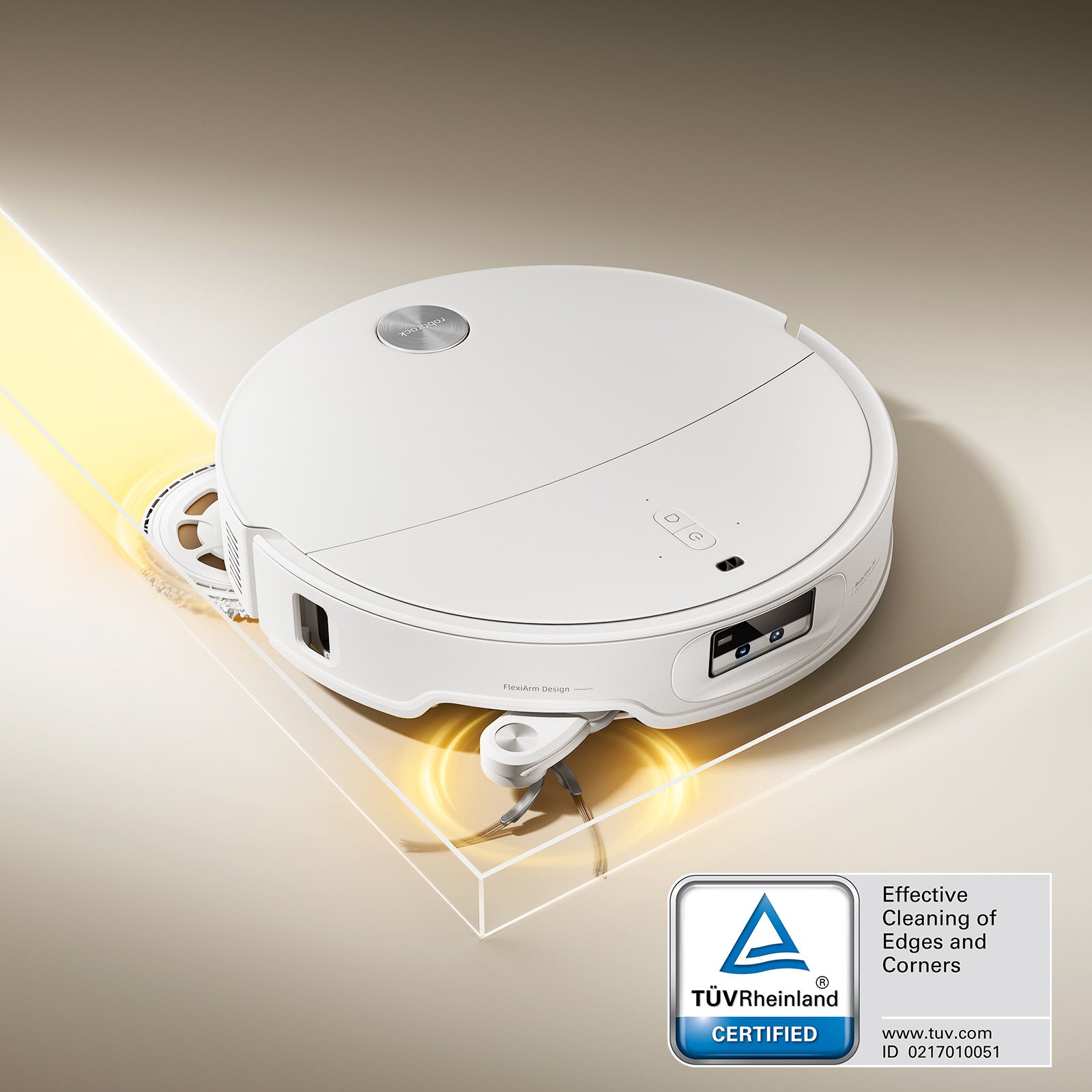 Die exklusive FlexiArm™ Arc Seitenbürste und das Kantenwischsystem von Roborock erbringen außergewöhnliche Reinigungsabdeckung und beseitigen blinde Flecken, damit wirklich kein Schmutz zurückbleibt. • 100 % Kanten- und Eckenabdeckung8 • 0 mm entlang der Kante und Ecke8