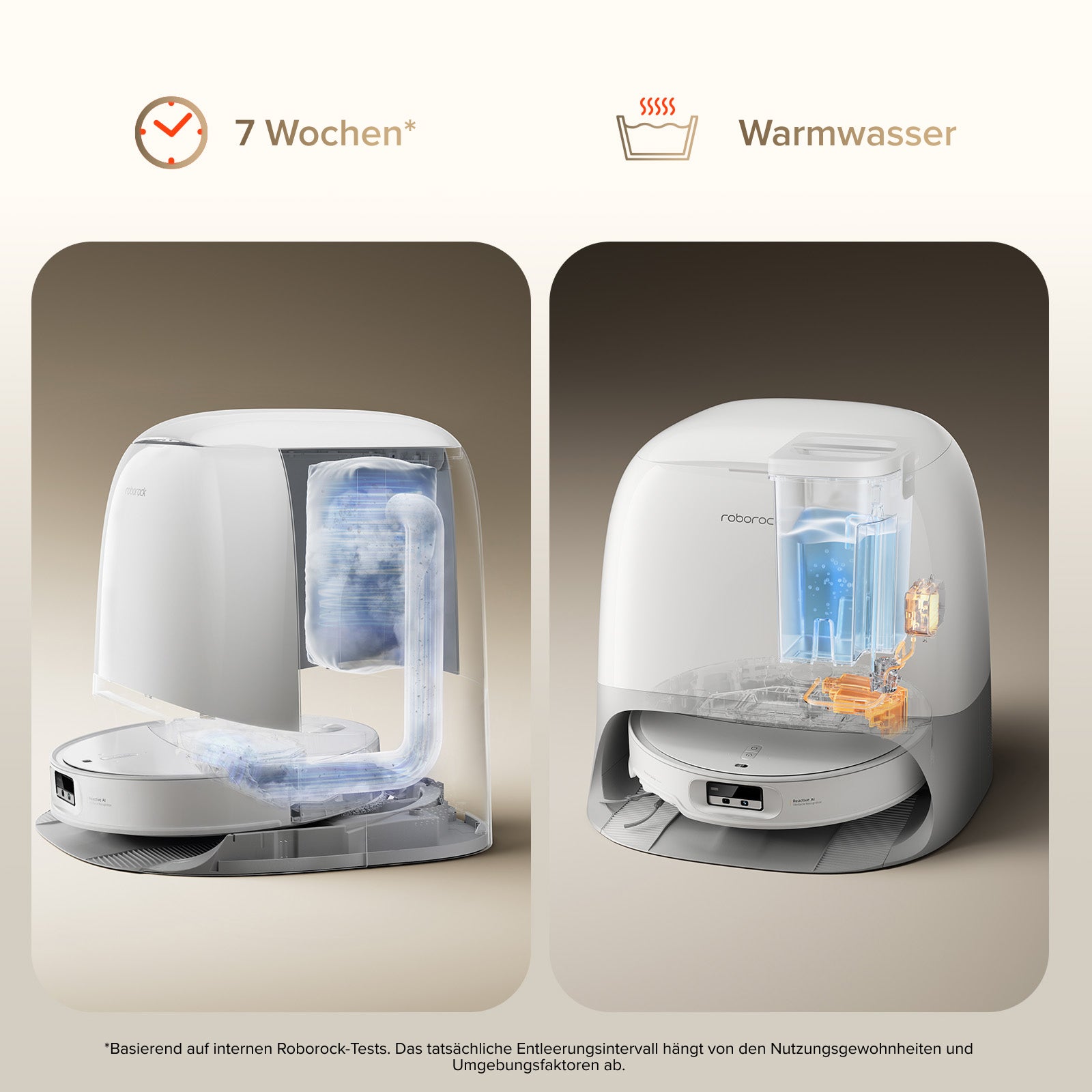 16. Basierend auf internen Roborock-Tests. Das tatsächliche Entleerungsintervall hängt von den Nutzungsgewohnheiten und Umgebungsfaktoren ab.