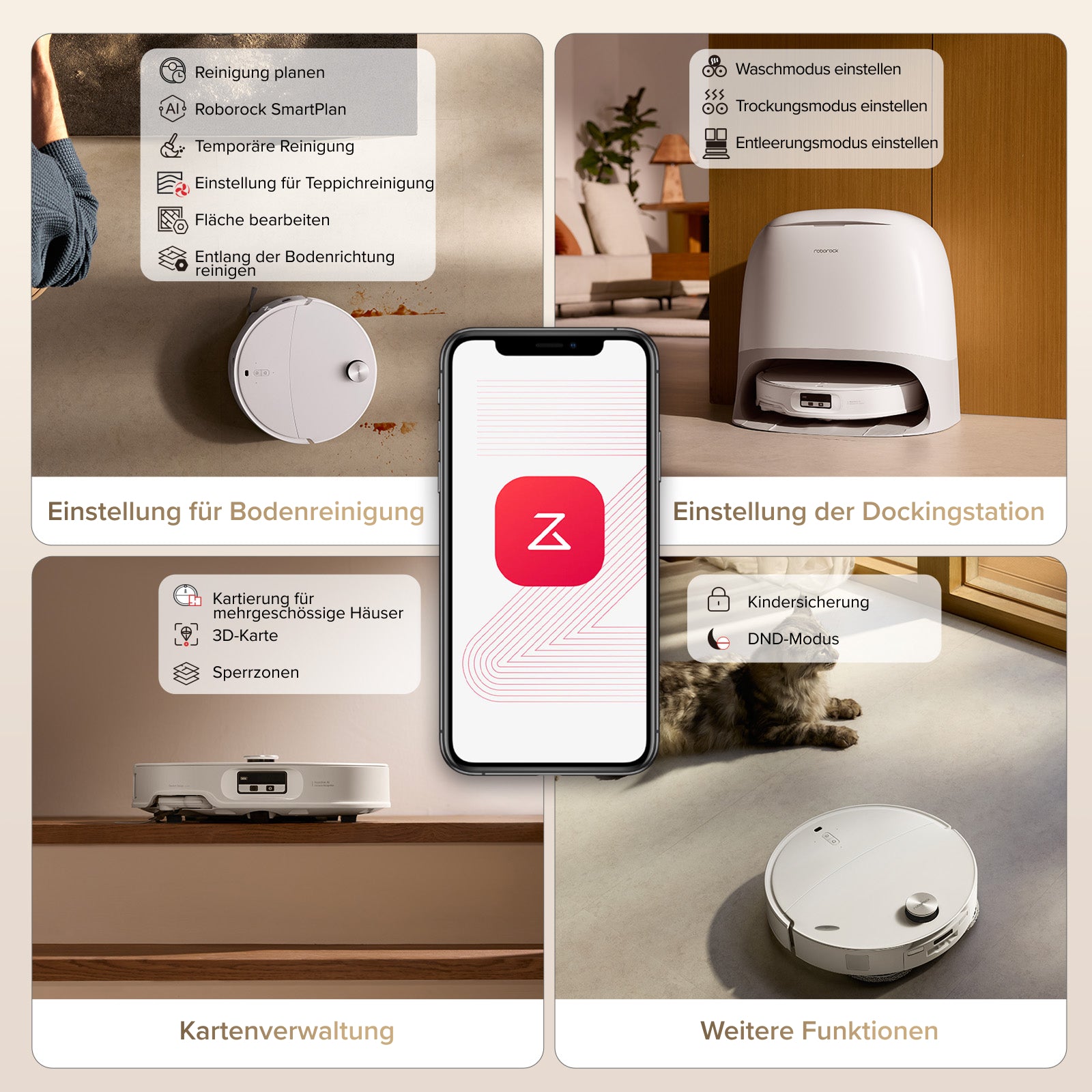 Plane Reinigungen, verwalte Karten, stelle die Modi der Dockingstation ein und erkunde intelligente Funktionen – alles in der Roborock App.