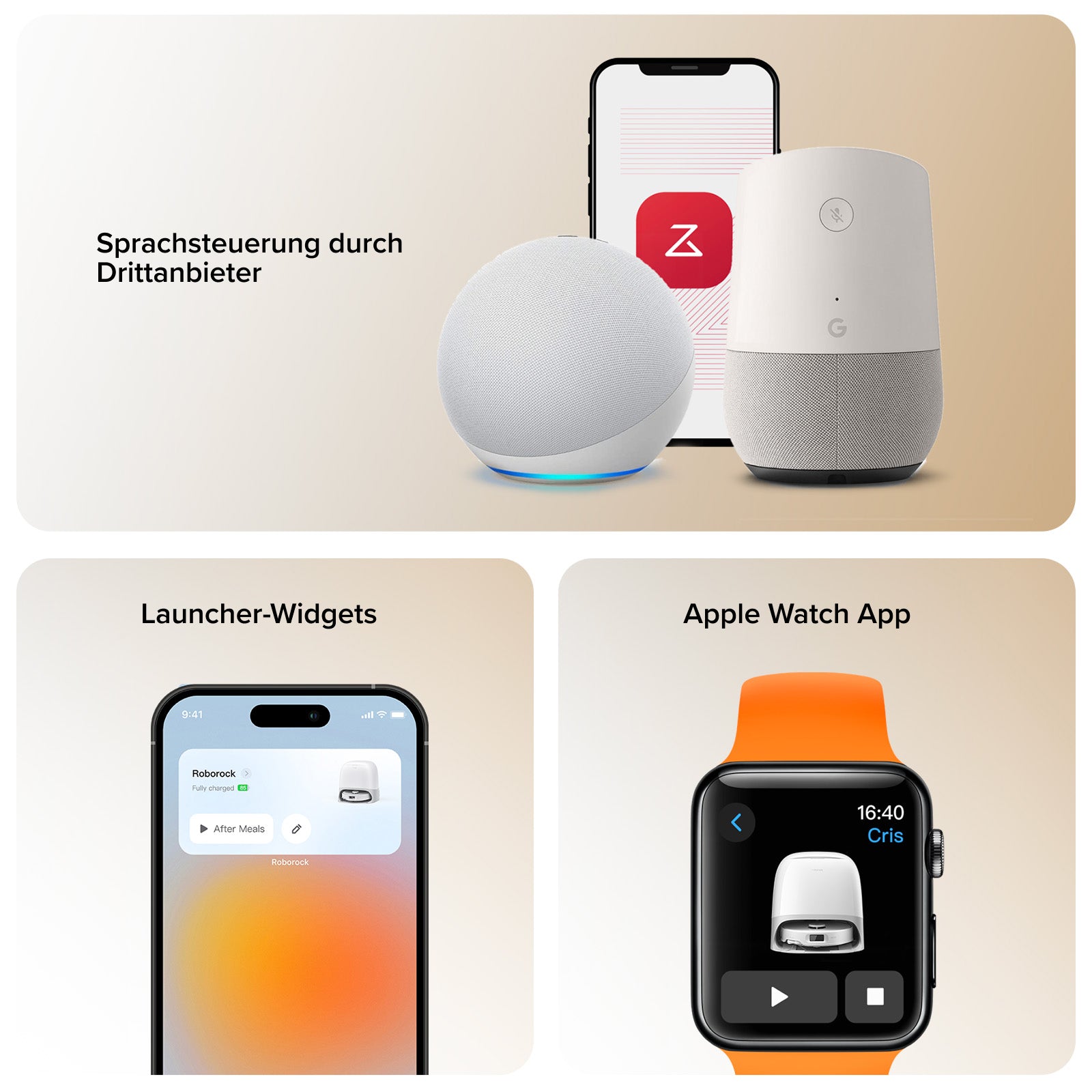 Drittanbieter-Sprachsteuerung Sprachbefehle über Amazon Alexa, Apple Siri-Kurzbefehle oder Google Home. Launcher-Widgets Nur einen Klick entfernt: benutzerdefinierte Reinigungsroutinen. Apple Watch App Starte schnell Reinigungen oder rufe den Status ab.